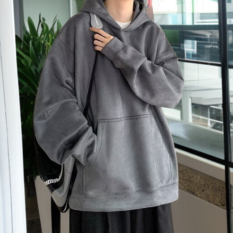 フード付きカップルスウェットシャツカジュアルレトロヘビーウェイトスエードルーズジャケット